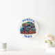 Reloj de pared de camión monstruo. Un vibrante camión monstruo conduciendo a través del barro en un estilo de caricatura, con expresiones exageradas y juguetonas, ilustración digital con colores llamativos y detalles caprichosos, inspirado en dibujos animados clásicos de los 80