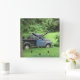 Este reloj de pared presenta un viejo camión vintage que se ha puesto en el pasto. ¡Gran adición a una cueva de hombre!