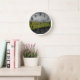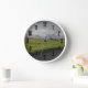Reloj de pared con marco blanco que muestra tierras de labranza de color parcial