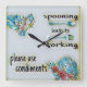 Este es un reloj lindo para la cocina que hace más de lo que dice la hora. Nos informa de que "La parodia conduce a la falsificación. Por favor, use condimentos".