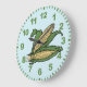 Reloj de pared de cocina de mazorcas de maíz para su hogar. Reloj de pared azul y verde con una ilustración de dos mazorcas de maíz que hace un bonito decorado de cocina. Ideal para una casa de campo, una casa de agricultores de maíz, o simplemente un divertido reloj decorativo para la cocina o comedor de un amante del maíz.