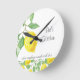 Personalice este reloj de pared de limón cítrico de estilo campestre con su nombre y mensaje preferidos. Este alegre reloj de cocina amarillo y blanco sería un regalo de cumpleaños o inauguración reflexivo para ella. Cuenta con un diseño brillante e invitador perfecto para agregar un toque de calidez y personalidad a cualquier cocina o hogar.