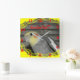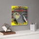Captura de pantalla de un Cockitiel brillante y colorido con un fondo gris que está en un RELOJ DE PARED.