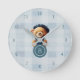 Crea un reloj de pared único para tu hogar o guardería con colores azules, cuadros y un osito de peluche chic y desenfadado. Parte de la colección de diseños Bear Jean Baby. Utilice la plantilla para agregar el monograma deseado.