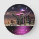 Este reloj ofrece el horizonte de Detroit en la noche, encendida en rosa en apoyo de mes de la conciencia del cáncer de pecho.