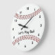 Reloj de pared de diseño de béisbol, con texto de personalizable. Para que no haya texto, elimine el texto de ejemplo y deje en blanco.