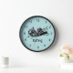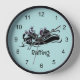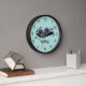 Reloj de pared de diseño de refrenado de agua blanca con texto de personalizable y color de fondo.
