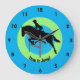 Reloj de pared de diseño ecuestre con color de fondo de personalizable y texto. También se pueden quitar los anillos de color central, si se desea.