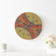 Disolver los relojes de pared con números negros. La disolución es un diseño abstracto creado por Vexenwraith y consta de círculos y rectángulos rojos, naranjas, olivos y grises.