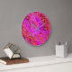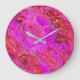 Este reloj de pared tiene un diseño de mármol giratorio en tonos magenta, rojo, púrpura, orquídea, negro y oro. El patrón se ve un poco orgánico - me recuerda a agate girado, tintes de corbata, fractales y mármol. Añade un poco de interés a tu pared de manera oportuna. Este diseño se ofrece en diferentes formas y tamaños de reloj.