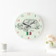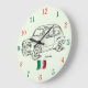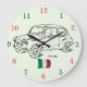 Un reloj de pared inusual y colorido para un entusiasta clásico del coche. En la cara es Fiat 600 y una bandera italiana. Esto haría un regalo ideal para alguien y sería grande en un restaurante italiano.