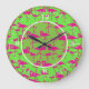 Reloj de pared de flamingo rosa y verde.