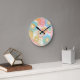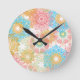 Reloj de pared florido con rosa, azul, verde y amarillo.