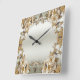 Hermoso reloj de pared de flores blancas ornadas doradas