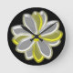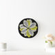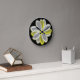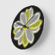 Este reloj impresionante presenta una imagen digital de una flor de margarita con pétalos de color blanco y amarillo con un centro amarillo. Los pétalos parecen brillar con una hermosa calidad reflexiva. La flor está sobre un fondo negro para un contraste máximo y el resultado es impresionante.