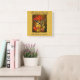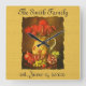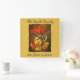 Reloj personalizado de antigüedades, frutas antiguas y flores. Este reloj de pared familiar tiene una bonita imagen antigua de un jarrón amarillo de flores rojas, rodeado de uvas verdes y rojas y granadas. El fondo es amarillo intenso. Personalizar con su apellido y fecha de establecimiento. (o cualquier texto que elija)