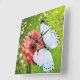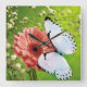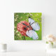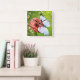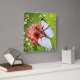 Este reloj de pared está hecho con una mariposa azul bonito en una margarita rosa.