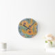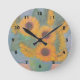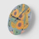 Este reloj de pared cuenta con girasoles en un jarrón, un cuadro de Brendan Loughlin, un artista de Guilford, Connecticut.