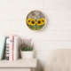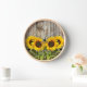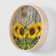Acentúe el interior de estilo campestre con este reloj de pared diseñado con girasoles. Este reloj rústico presenta alegres girasoles amarillos con un fondo de valla de madera.