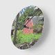 Este reloj de pared presenta un granero de campo rojo en Connecticut. ¡Ideal para decoración rústica!