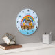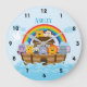 El reloj de la pared del arca de Noé con un fondo de agua azul, el arca, los animales y el nombre del bebé. Gran regalo de ducha para la madre de un bebé recién nacido. Reloj perfecto para niño o chica.