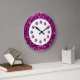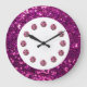 Reloj de pared de piedras preciosas de color púrpura con joyas diamante de imitación rosas impresas en la cara del reloj y magnífico purpurina simulado de color púrpura también impreso en el reloj en este diseño de decoración de paredes para la cocina, el comedor, la habitación dormitorio o cualquier habitación de la casa que desee añadir un poco de color y carácter. Diseñado para las mujeres y los chicas adolescentes que quieren bañarse con su decoración.