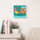 Este reloj de pared de juego de cartas semanales para mujeres retro presenta un dibujo personalizado de cuatro mujeres modernas de mediados de siglo en un fiesta de gallinas. Están socializando en un elegante comedor. En una pared de ladrillos turquesa y verde azulado, hay una imprenta de tela estirada de estilo globo moderno de mediados de siglo disponible en la tienda Zazzle de StrangeLittleOnion. ¡Dios mío, tienen buen gusto! A través de puertas correderas de cristal, podemos ver el exuberante césped verde de los suburbios. Al otro lado de la calle, una casa naranja elegante con un coche rosa y blanco aparcado en el puerto. De vuelta en el comedor, tres mujeres se sientan en una mesa redonda con un mantel naranja. Hay una pelirroja con un vestido amarillo, una morena con un vestido verde y una rubia con un vestido rojo. Están sosteniendo tarjetas en sus manos. Hay cuatro teacups sobre la mesa que esperan ser llenados por la anfitriona de pelo cuervo con un vestido de maleza rosada. Lleva una bandeja con una jarra de té encaramada encima. Todas las mujeres lo están pasando muy bien, pero probablemente deberían vigilar a la rubia. Si esa carta que tiene a su espalda es un indicio, ¡hace trampa!