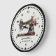 Este reloj de pared con temática de costura está impreso con una imagen de una máquina de coser vintage encajada y cosida con fragmentos de tela finos y brillantes sobre una cara blanca y nítida. Personalice el texto en el sencillo editor de Zazzle para su entusiasta de la costura o el tejido favorito. Gran decoración de pared para el espacio personal o de negocios en la elección de estilos redondos o cuadrados.