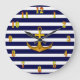 Las rayas marinas y de la bandera marrón ponen a la moda el reloj de la pared en un estilo náutico.