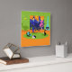 Este reloj de pared acrílico de la pareja retro romántica de la noche parece una escena de una comedia romántica de los años 60. El diseño minimalista cuenta con una atractiva pareja de personalizados en la sala de estar de un moderno apartamento urbano de mediados de siglo. La sala cuenta con una pared de piedra verde, con un ventanal que da al suelo y al techo. A través de la ventana podemos ver la silueta azul de un horizonte de una gran ciudad. Una luna creciente es visible en el cielo naranja de la puesta de sol. El mobiliario de la habitación incluye una tumbona verde a juego con un taburete a pie de página, un amarillo, una luz sputnik y una chimenea turquesa con forma de cono y una chimenea. En el centro del parqué naranja, hay una alfombra redonda y verde. En la alfombra se coloca un reproductor de discos portátil, turquesa y negro. Junto al reproductor de discos, se puede ver un disco de vinilo saliendo de la portada de un álbum kitschy. También en la alfombra hay un gato negro y elegante vestido con un collar verde azulado. Este lujoso felino está sentado frente a un vaso de martini. Disfrutando de esta escena, tenemos una pareja muy sofisticada. Hay un hombre elegante con traje azul, camisa azul clara y corbata roja. El hombre alto, oscuro y guapo está disfrutando de la compañía de una mujer rubia elegante. La encantadora dama está usando un vestido rosado caliente con una forma que encaja los corpiños y la falda florida. Cada una de ellas sostiene un cristal de martini de cristal con una oliva flotante. Salud! ¡Aquí está la velada perfecta en casa!