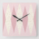 Este modelo de reloj de pared acrílico (de gran tamaño) de Mid Century Modern Pink Argyle Square presenta un fondo rosa de la Primera Dama y un patrón de diamantes modestos, translúcidos y de color rubor sobre diamantes de color crema más grandes y vintage con especkles de época espacial de color dorado. Este estilo minimalista de inspiración y deconstrucción es un retroceso simplista de la era atómica más grande que la vida que dominó el paisaje decorativo de los años 50 y 60. Este diseño kitsch recuerda a todo, desde las señales de la bolera de Palm Springs retro hasta los programas de televisión clásicos, pasando por las bandejas de televisión que usaste en la casa de tu abuela.