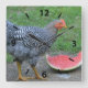¡Este reloj de pared tiene una de nuestras gallinas rocosas que AMA la sandía! ¡Genial para los amantes del pollo!