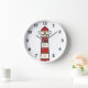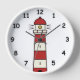 Reloj de pared de la torre de vigilancia del faro rojo y blanco. Decoración casera de diseño náutico.