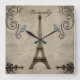 Adorna una pared en cualquier habitación con este elegante diseño de reloj de fondo gris adornado con la Torre Eiffel, los remolinos y las mariposas en verde azulado. El texto de personalizable le permite alterar las fuentes, cambiar los colores y tamaños del texto según desee. Personalice para usted o haga un gran regalo.