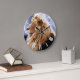 Este retrato de fantasía de un León noble, uno de los grandes felinos en peligro de extinción de África, aparece en este reloj de pared tan arty. Creado para cualquiera que ame los Leones y la Vida Silvestre Africana. Pintura de Skye Ryan-Evans ©.
