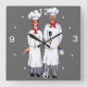 Una pintura original de la acuarela de Anne Ormsby de dos cocineros adorna este reloj de pared de la diversión.