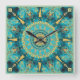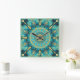Un diseño mandala colorido en múltiples partes de 4 tonos azules y turquesa con acentos dorados.