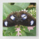 Este impresionante reloj muestra una fotografía de una hermosa mariposa tropical. Esta especie es principalmente negra con hermosos manchas azul brillante iridiscente en cada ala. La fotografía fue tomada usando macrofotografía para obtener un resultado asombrosamente detallado.