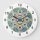 Este encantador reloj de pared cuenta con un círculo de medallones azul, verde y tostado. Este reloj de pared puede funcionar en cualquier habitación. Los números son grandes para facilitar la lectura. Esto es del Día de Fay Jones, fabricante de mosaicos de Oregón.