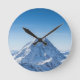 Impresionante reloj de pared de montaña nevado con un cielo azul fresco. Un diseño apacible y refrescante para los interiores naturales