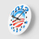 ¡Reloj de pared de Obama 2012! En blanco y azul rojo patriótico. ¡Muestre su apoyo al presidente Barack Obama! Este reloj sería impresionante en una sede de campaña o en un banco de teléfonos. ¡Obama 2012! Copyright Scarebaby Design.