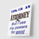 Sí, soy abogado, pero uso mis poderes para decir bien. Divertido eslogan de abogado para profesionales en letras mayúsculas legales en azul y marrón. Haga clic en Personalizar para agregar su nombre o mensaje, e incluso guarde el diseño para más adelante.
