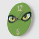 Hermoso dibujo de ojos de gato - con sólo los diamantes incrustados en oro de 12 y 6 en oro creados digitalmente para parecer casi real - para los amantes de los gatos en relojes redondos o cuadrados - he elegido verde para el color de fondo, pero puede fácilmente cambiar esto eligiendo el personalizar naranja este botón y luego el botón de edición para una lista de color desplegable.