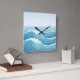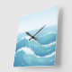 Minimalista reloj mural de inspiración oceánica con olas de color azul y blanco. Perfecto para casas en la playa e interiores relajantes