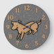 Encantador reloj de pared para amantes de los perros. Decorado con una ilustración de dibujos animados linda en un perro juguetón acompañado de una impresión de fondo de hueso pequeño. El diseño incluye números de hora grandes y negritas. La combinación de gris oscuro y marrón claro hace una paleta neutral fina que es fácil de combinar con diferentes estilos de decoración del hogar. Hace un hermoso acento de pared para su espacio de vida o un regalo maravilloso para los amantes de los perros.
