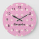 Chicas o damas reloj de pared redondo con estampado de puntas de polka rosa, blanco y negro a la moda. Personalice el texto opcional en el sencillo editor de Zazzle