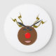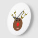 Este impresionante reloj cuenta con un gracioso personalizado de un reno. Tiene ojos negros turbios y una nariz brillante roja brillante. Los cuervos están apuntando y parecen futuristas haciendo de este reno un reno cibernético. Sin embargo, sigue siendo lindo y amigable.