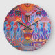 Ritual de peyote Huichol, Reloj de pared, Reloj de pared Huichol, Reloj de pared tribal, Reloj de pared Wicca, Reloj de pared de ritual de peyote, Virginia Vivier, Arte popular vagabundo, Arte popular tribal, Arte popular Huichol, Reloj de pared de diseño mexicano
