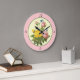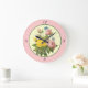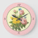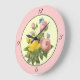 Reloj de pared de rosas botánicas amarillas rosada