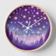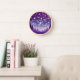 Una escena natural con un cielo estrellado morado y rosado adorna este reloj de pared. Puede editar el texto para adaptarlo a sus propias necesidades, el texto actual dice "Alcanzar para las estrellas". Quizás el regalo perfecto para un estudiante, un regalo de cumpleaños o algo para que Santa regalara a los Navidades.